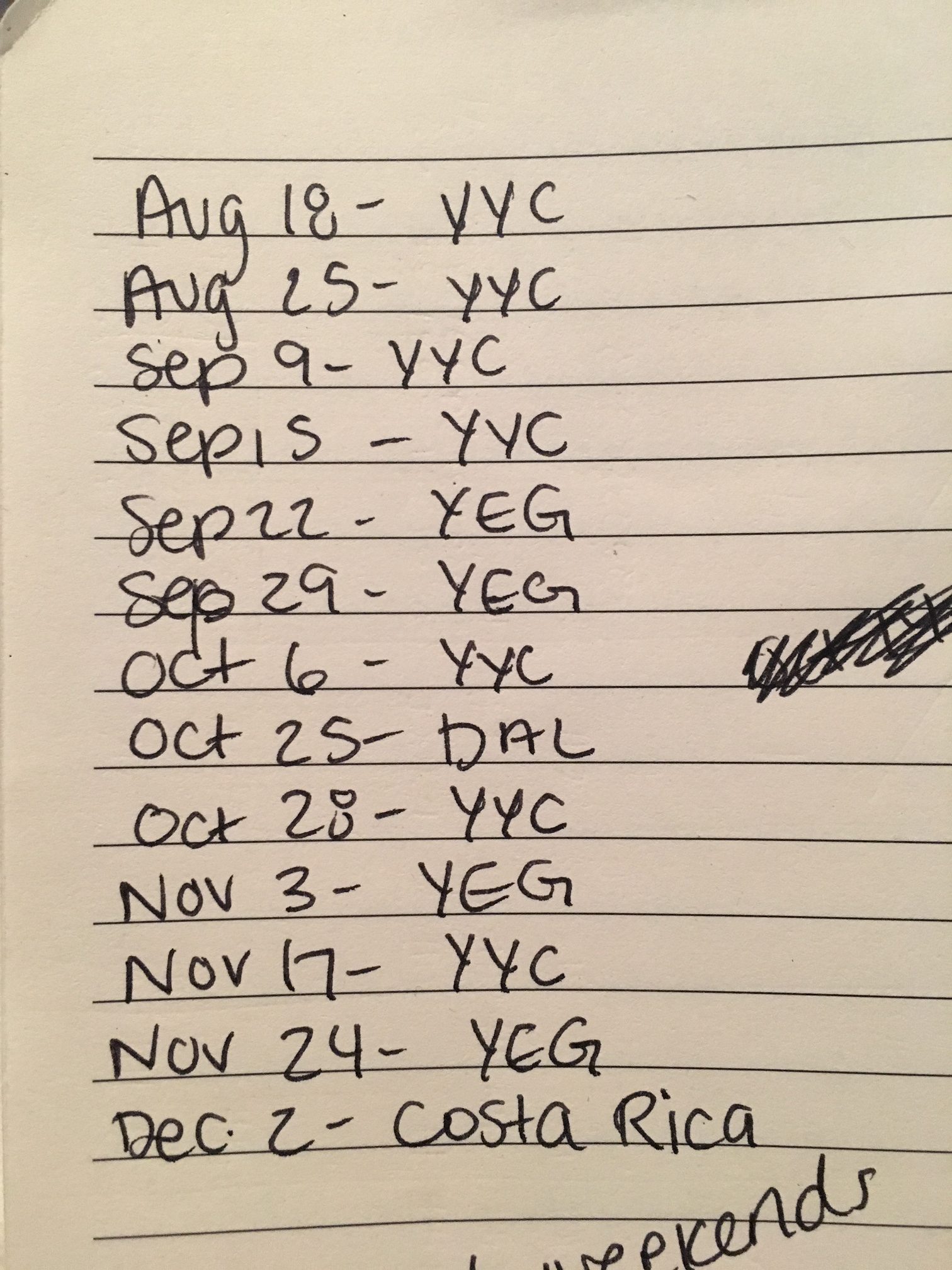 You see, from the day we moved here until the first weekend in December — there are 18 weekends. I will be in Fort McMurray for 5 out of those 18 weekends. Less than half of my weekends will be spent not travelling to cities that hold close friendships or family members.